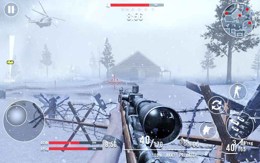 以二战为背景,提供真实模拟射击体验的游戏,采用虚拟按键进行控制。你需要深入敌军基地,为了赢得战争而完成你的任务使命。