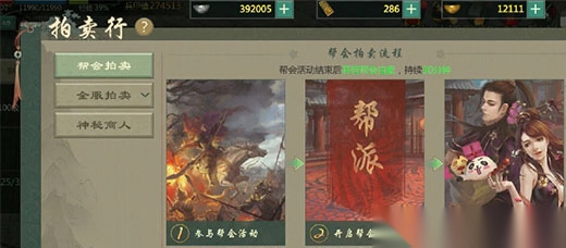 首先讲讲帮会拍卖,参与帮会拍卖的前提是得加入一个帮会。帮会拍卖的开启遵循特定流程,简而言之,需参与帮会的战斗玩法活动后才会开启。帮会奖励依据排名而定,排名越靠前,奖励越丰厚。开启后,道具会进入拍卖环节,玩家既能点击进行竞价,也能选择一口价直接购买从而获取道具。要是玩家没有相关需求,也可不参与购买。拍卖时长为三十分钟,结束后,参与活动的成员能够获得分红奖励。