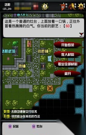 之后就可以找灶台做饭了。灶台在汉阳府衙旁、洛阳(25,28)处,华山华山派厨房都可以找到。