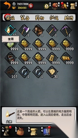 8、于华山思过崖山洞中,取用5个文房四宝与火把,在(1,7)、(4,9)、(4,3)、(13,9)、(9,6)这5处抄录五岳剑法,随后将其送与风清扬参悟,如此便能获得A级五狱剑法(群攻技能)。