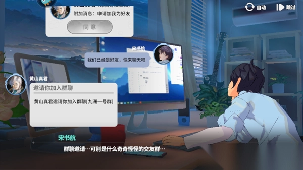 1、打开游戏后你会收到一个名叫黄山真君的家伙加你好友,他会邀请你加入九州一号群,点击同意!