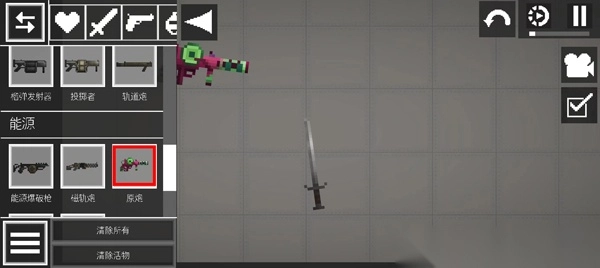 2、之后我们需要找到枪械里面找到原炮,选择将其拖动在光剑左上方的位置;