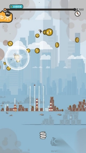 4、借助道具助力来改变飞行状态,强力弹簧能够达成“弹出天际”的奇妙效果。