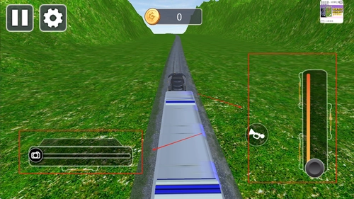 2、右侧是控制速度的区域设有刹车与鸣笛按钮,界面上方显示当前路线与货物状态。