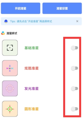 3、在准星界面,用户可根据喜好和习惯选择准星样式并进行设置,可以提高游戏中的命中率,