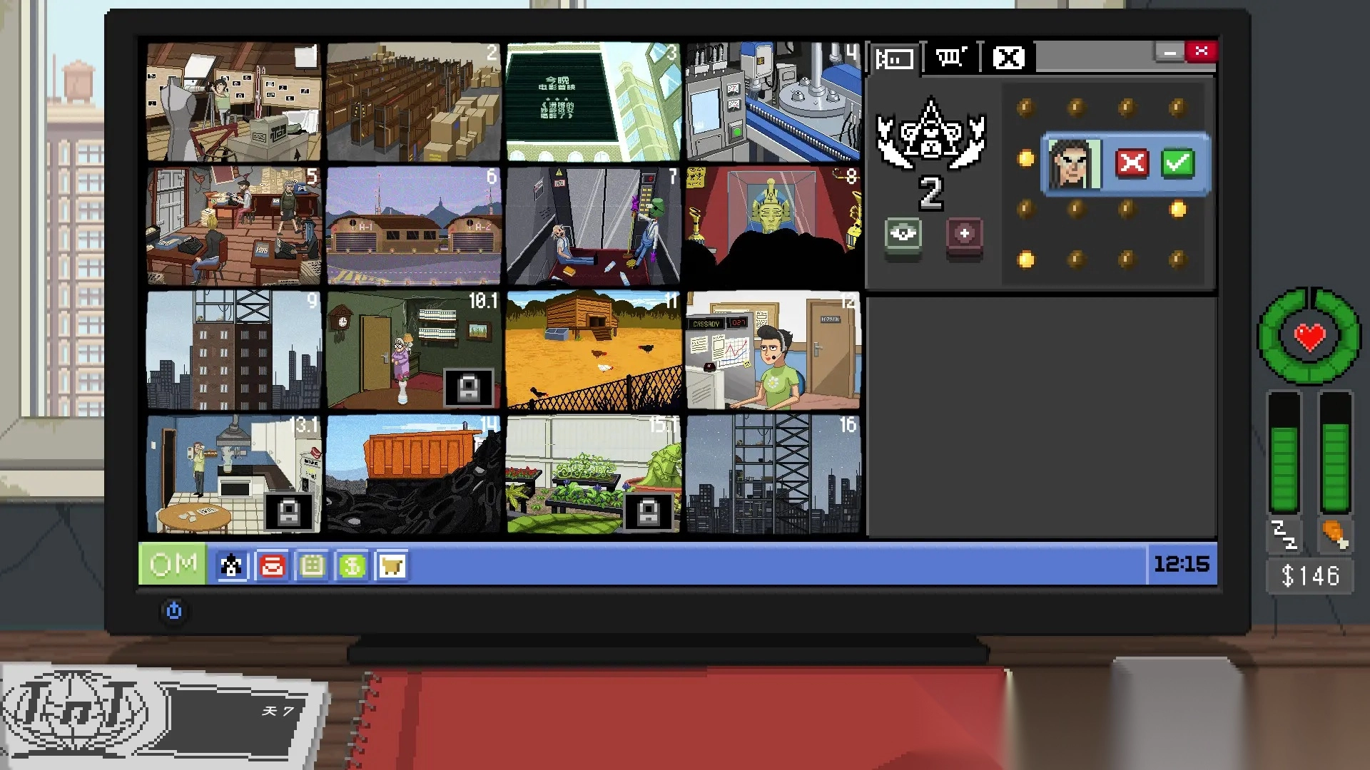 2、观察记录异常行为,拼凑碎片信息完成公司任务,解锁新监控区域。