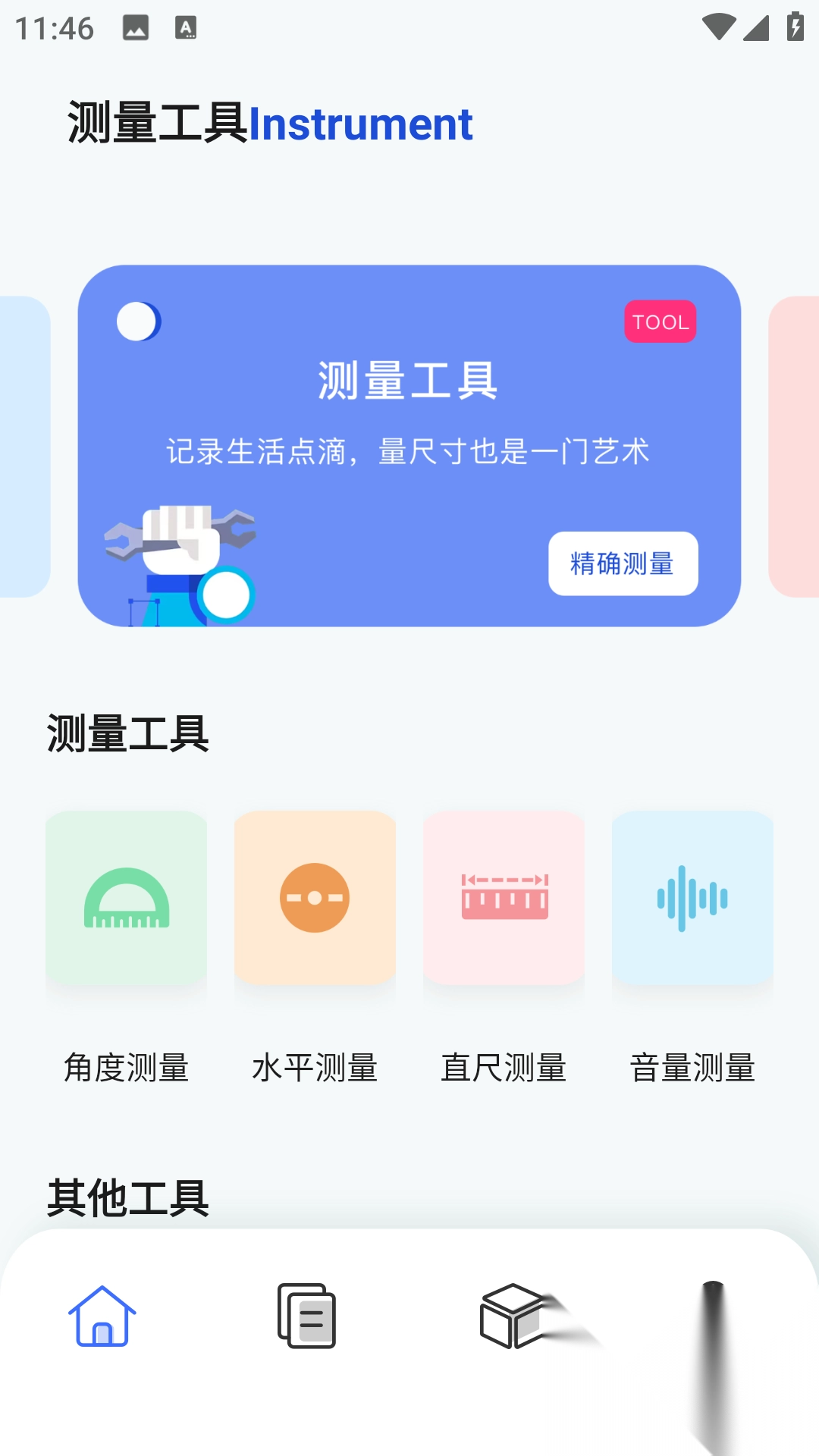 2、首页集成了各种测量工具,用户可以选择自己需要的点击进入使用;