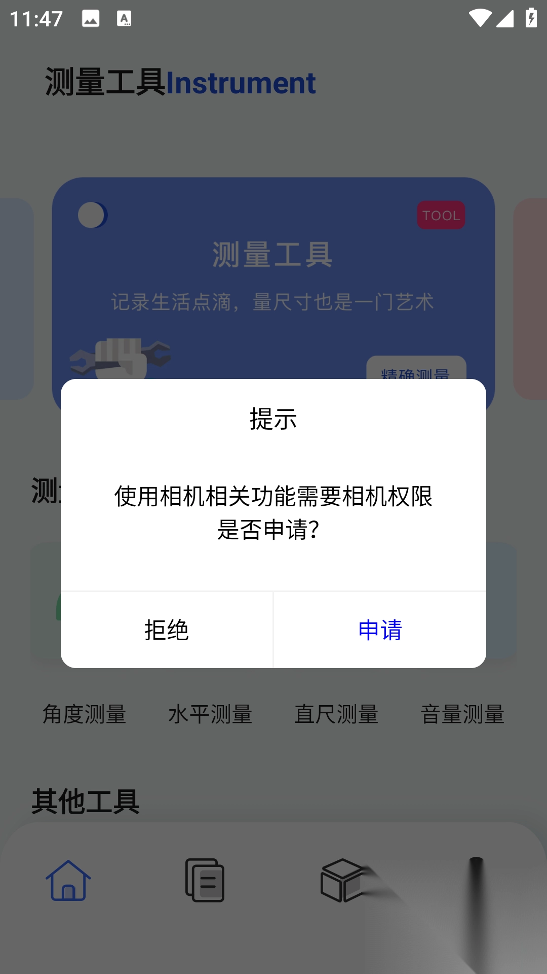 3、使用测量工具时,需开启相机权限,在软件提示时授权获取该权限便可。