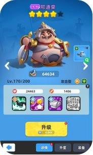 武将升级:消耗金币,提升武将的等级,武将升级会提升武将的属性。