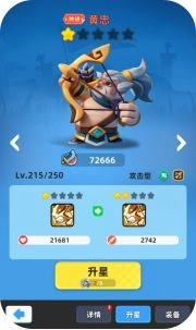 武将升星:消耗对应武将的碎片,提升武将的星级,武将升星能解锁武将技能提升技能等级。
