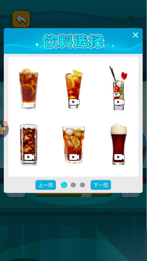 1. 来到饮料选择页面,挑选心仪的饮品,通过观看视频解锁制作方式,进而启动喝饮料的流程。