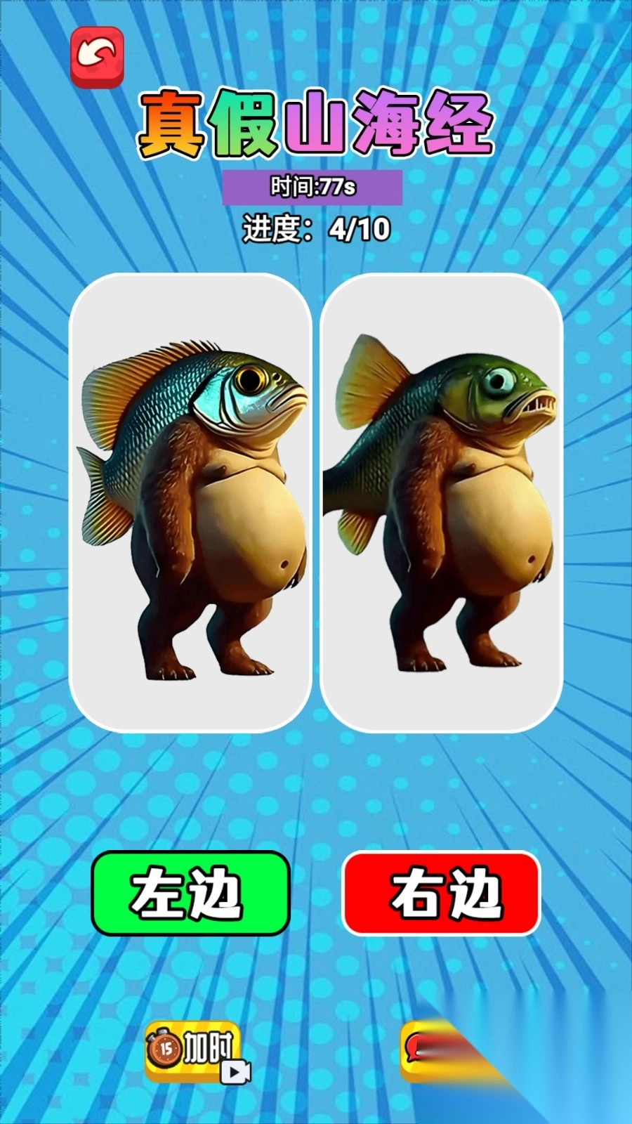1. 真假山海经关卡:仔细比对左右两图,迅速点击其中的不同之处,以此推动进度。