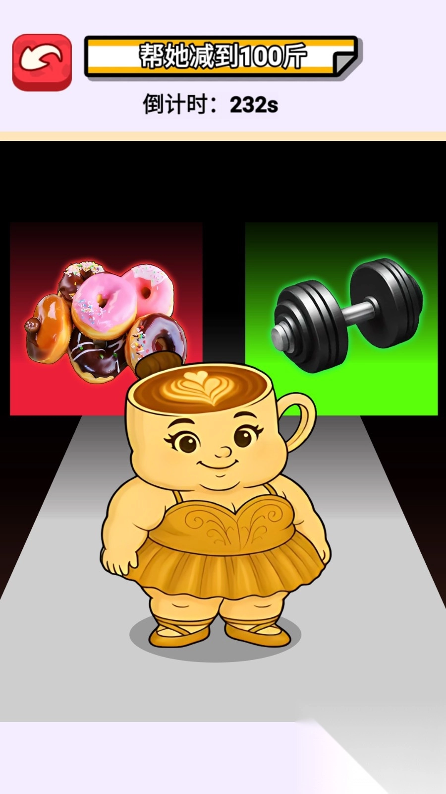 2、减重关卡选择需谨慎,先计算当前体重与目标体重的差距,再根据需求选择甜甜圈或哑铃进行调整。