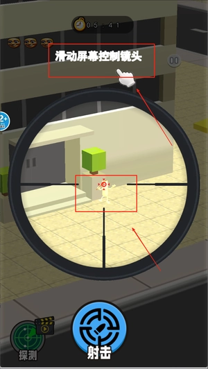 2、通过滑动屏幕来操控瞄准镜移动,长按开火按钮实施射击,在恰当的时机达成击杀任务,要留意躲开敌人的视线,防止暴露自身位置。