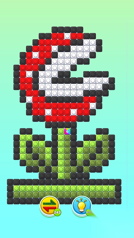2、色彩组合变化无穷,无论是基础三原色,还是渐变色系,皆一应俱全。这丰富的调色板赋予玩家自由施展创意的空间,使其能够打造出独一无二的像素艺术作品。