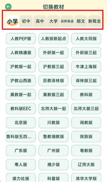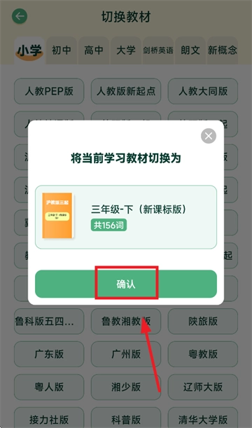 首先下载并安装能量单词app,安装完成后打开该应用。进入到首页界面,找到左上角位置,点击此处即可切换教材。