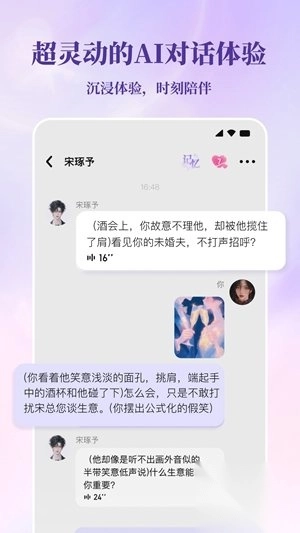 2、与AI原创角色展开智能互动,享受随时随地的暖心陪伴体验。