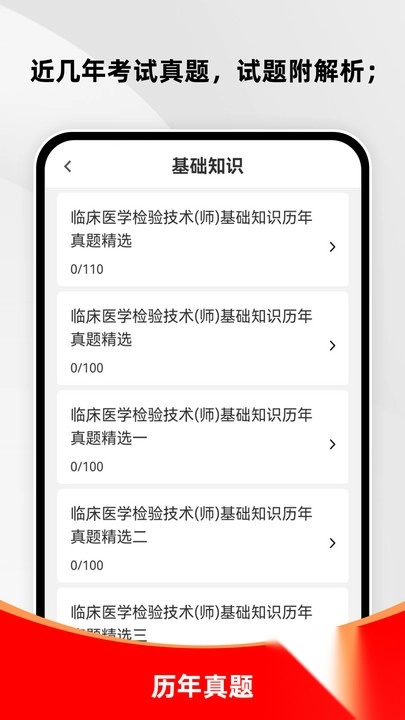 1、这款App拥有海量的题库资源,涵盖临床医学检验技术士、临床医学检验技术师以及临床医学检验技术中级等不同层级的考试内容。以临床检验技术师为例,其题目数量超过2630道,全面覆盖临床检验基础、临床血液学、临床化学、临床免疫学与检验等众多科目。