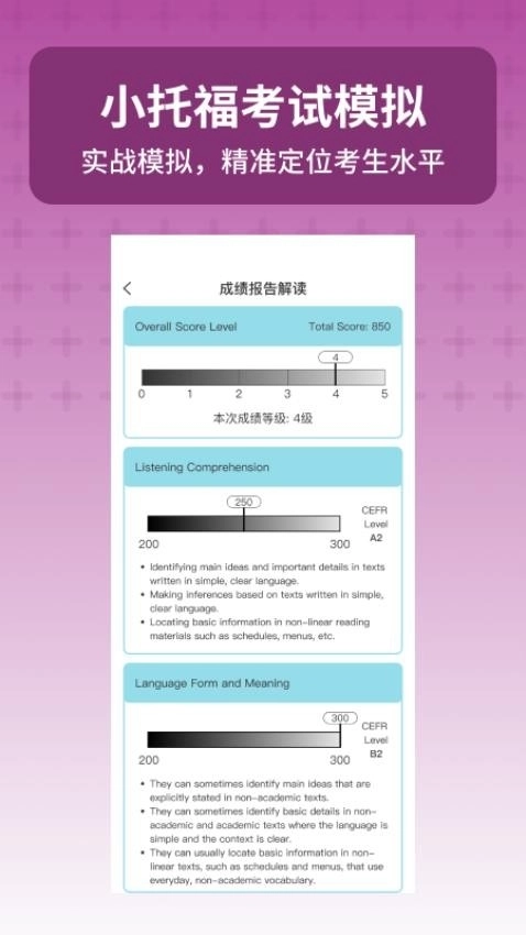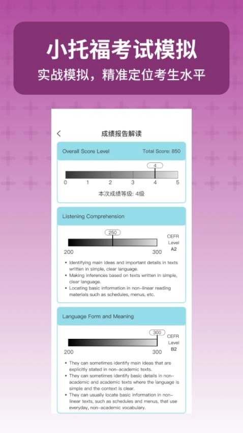 1、小托福考试宝app官网版所提供的几十张模拟题,都与现实中的题目做了对比,最大程度地还原了题目的难度。