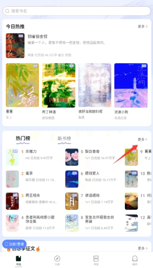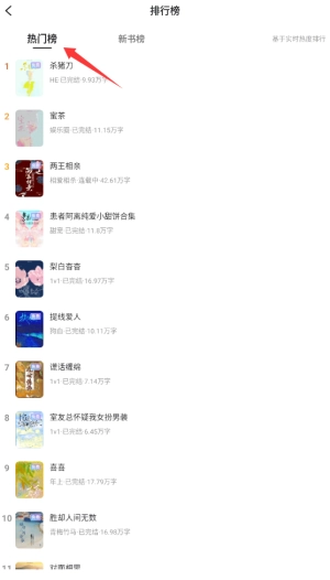 2、在展开的页面中选择"热门榜单"栏目,浏览当前最受欢迎的小说作品推荐列表。