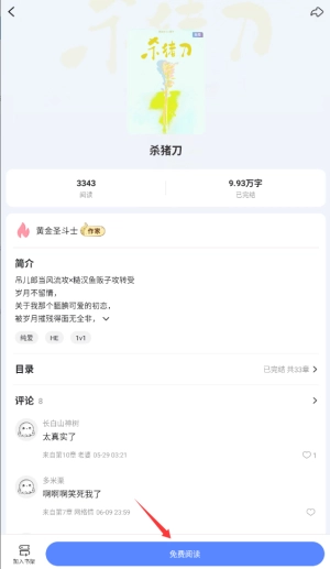 3、找到感兴趣的小说后,点击"免费阅读"按钮即可直接开始浏览作品内容。