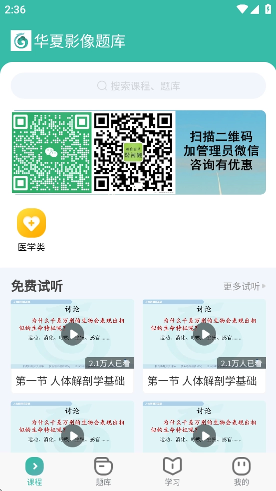 华夏影像题库能够向学员供应海量试题资源,还提供相关专业的网课供学员观看。