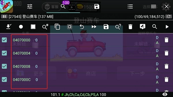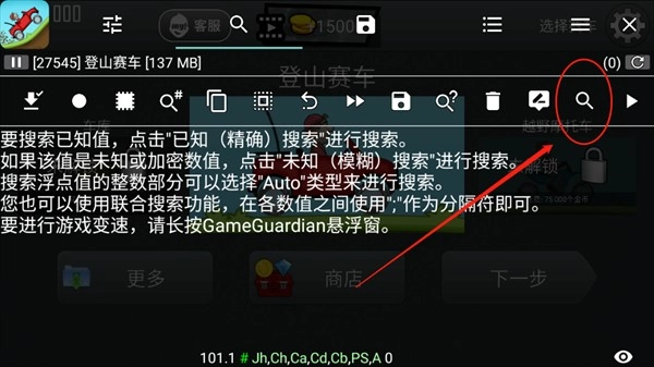 7、或者可以选择Auto 让GG 自己搜寻游戏内可以修改的参数。