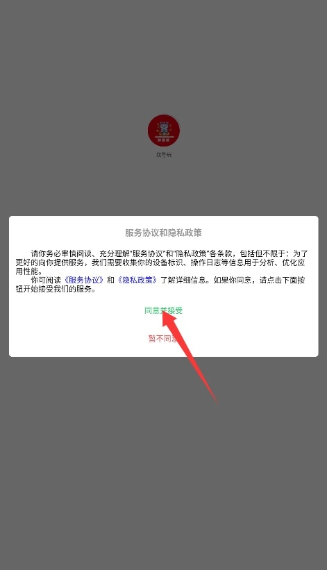 1、初次使用需完整阅读平台服务条款与隐私政策,确认后点击同意并接受进入应用。