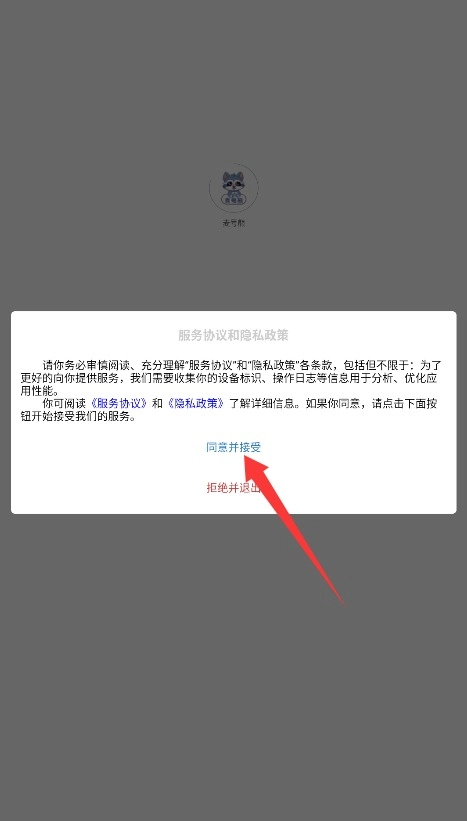 1、初次使用需完整阅读平台服务条款与隐私政策,确认后点击同意并接受进入应用。