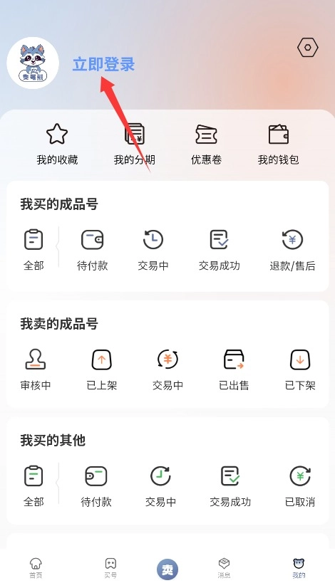 1、下载安装后完成注册认证,根据需求选择买号或卖号入口,快速进入对应功能界面开始交易流程。