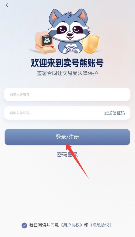 3、输入有效手机号获取验证短信,填写验证码并勾选用户协议后完成登录操作。