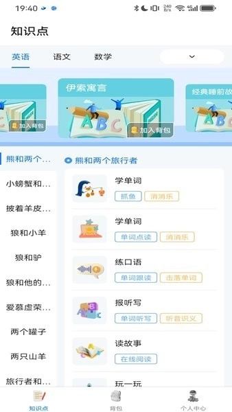 3、进入学科知识点页面点击学科选择需要学习的科目,即可使用各类学习功能。
