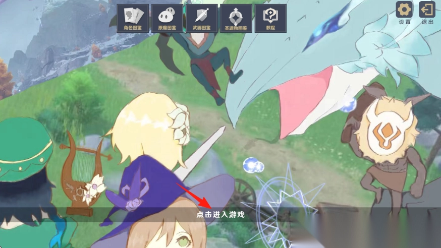 3、开局进入点击“点击进入游戏”,加载游戏,可查看角色图鉴、武器图鉴等功能,开启冒险。