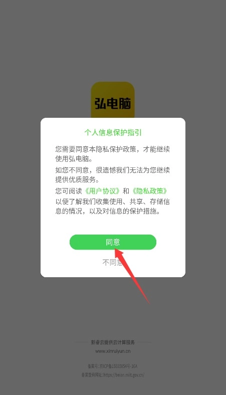 1、初次使用需阅读平台服务条款与隐私政策,确认后点击同意按钮进入应用。