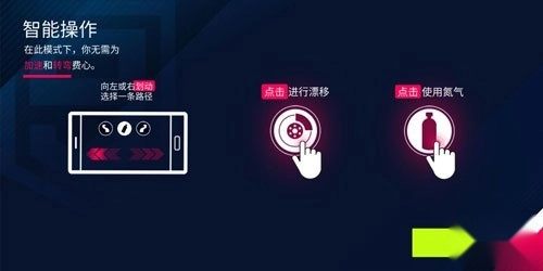 在此模式下,玩家可通过左右滑动屏幕来控制方向,点击屏幕使用氮气和漂移。