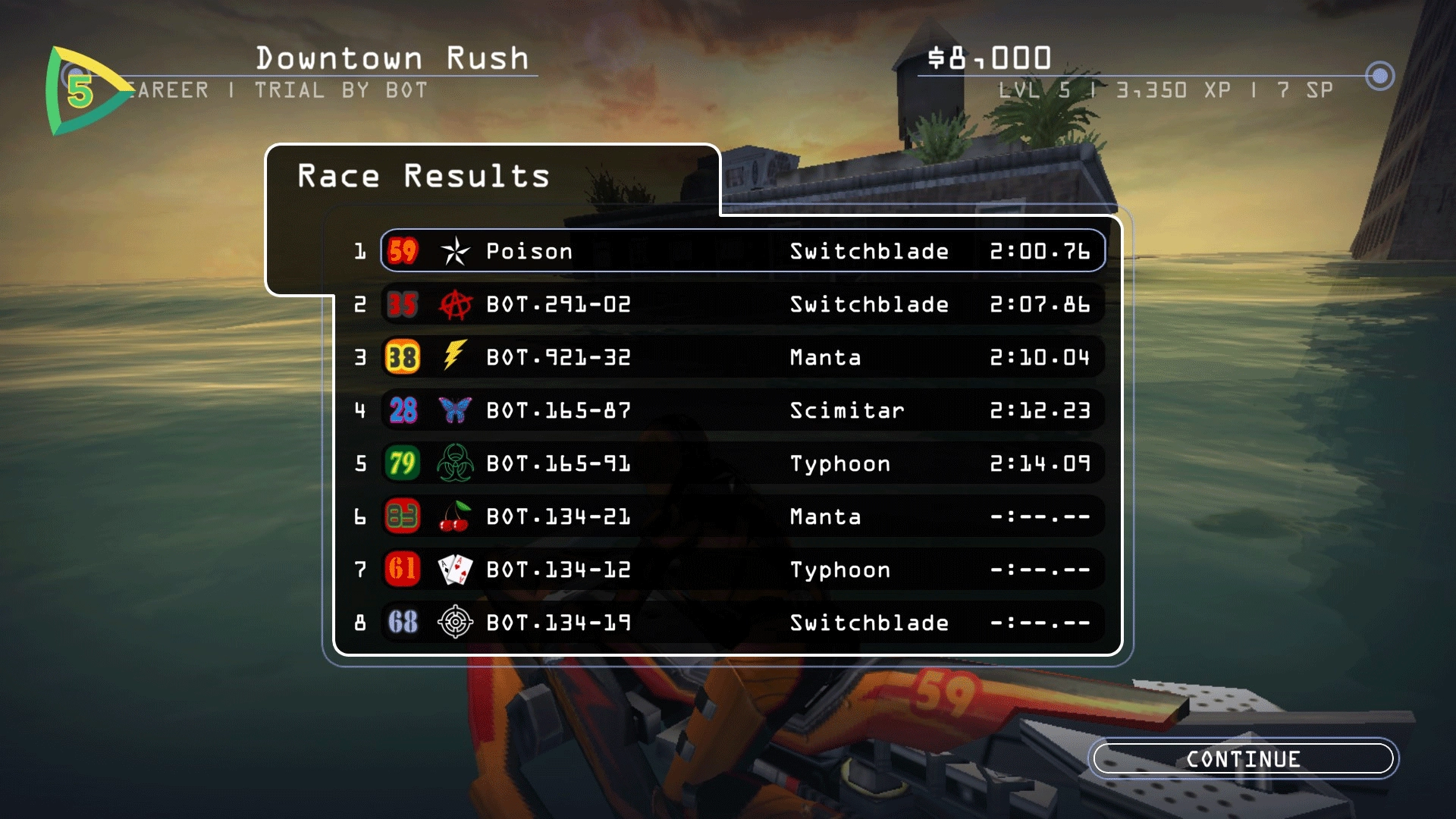 4、进入比赛后,操控赛艇全力争夺第一名,赢得游戏胜利,进而解锁下一关卡。