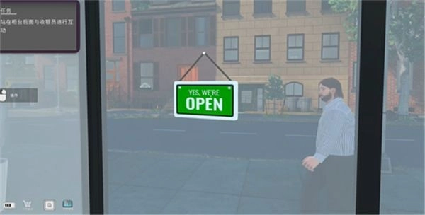 4、到达店铺门口,将招牌设置为“OPEN”,这样就可以迎接顾客了。
