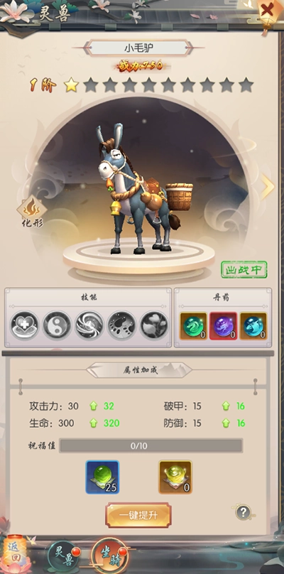 5、灵兽也可用过使用不同等级的丹药获得更多的属性加成;