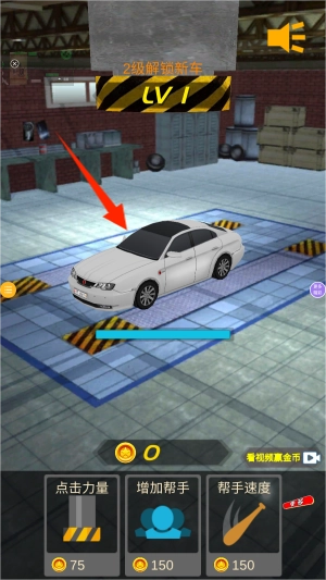 1、启动游戏后,点击主界面中央的汽车,系统立即展示待改造的基础车型。