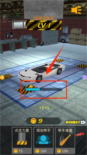 2、通过点击车辆不同部位触发液压改装效果,底部蓝色进度条实时显示当前改装完成度。
