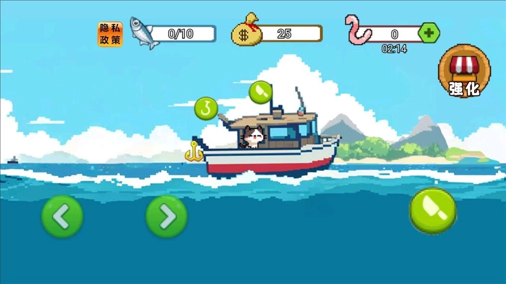 3、清新可爱的像素风格,打造轻松愉悦的环境,无论新老玩家都能畅快游玩。1、能够驾驶复古风格的渔船,于广袤的海域里捕捞各类鱼类,收获颇为可观的收益。