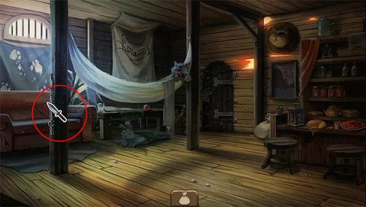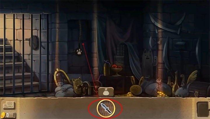 5、在这个柱子上,用匕首把绳子切开,获取钥匙。
