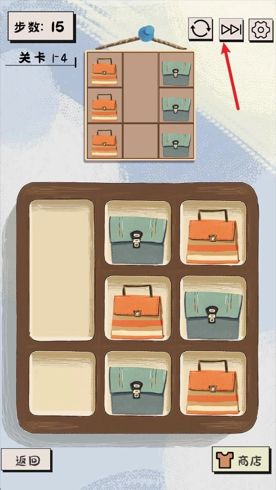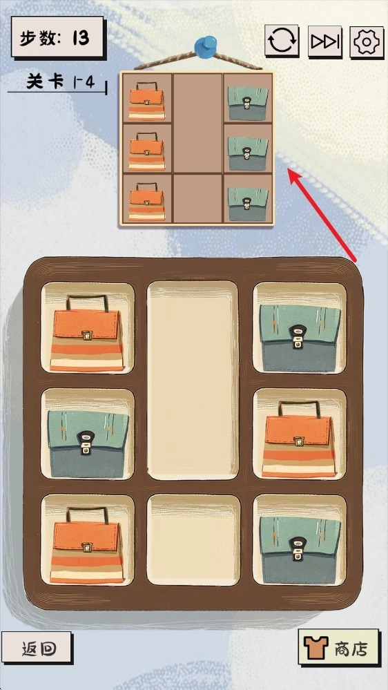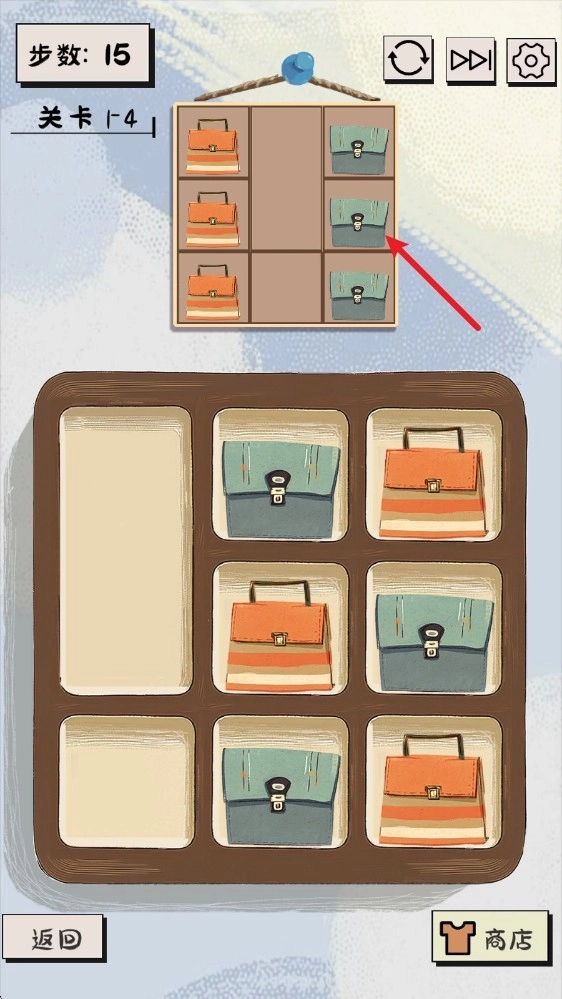 1. 当进入各个不同的关卡后,我们要通过挪动下方的物品来展开闯关行动,只要让物品到达上方相应的位置就算完成闯关。