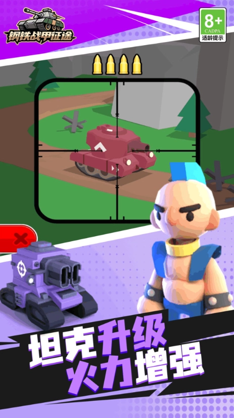 4、完成任务可获取金币,金币能用来提升射速、实现装甲自动修复或者增强子弹追踪等核心能力。凭借这些能力的提升,一步步进阶成为战场主宰,进而挑战难度更高的精英关卡。