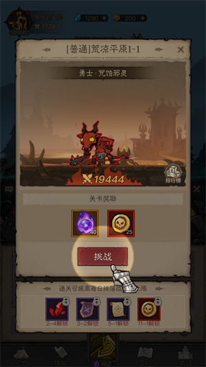 2. 从第二章起,我们会遇到一些小的战力卡点。不过别着急,多刷几轮小怪,更换下装备,就能轻松过关啦。