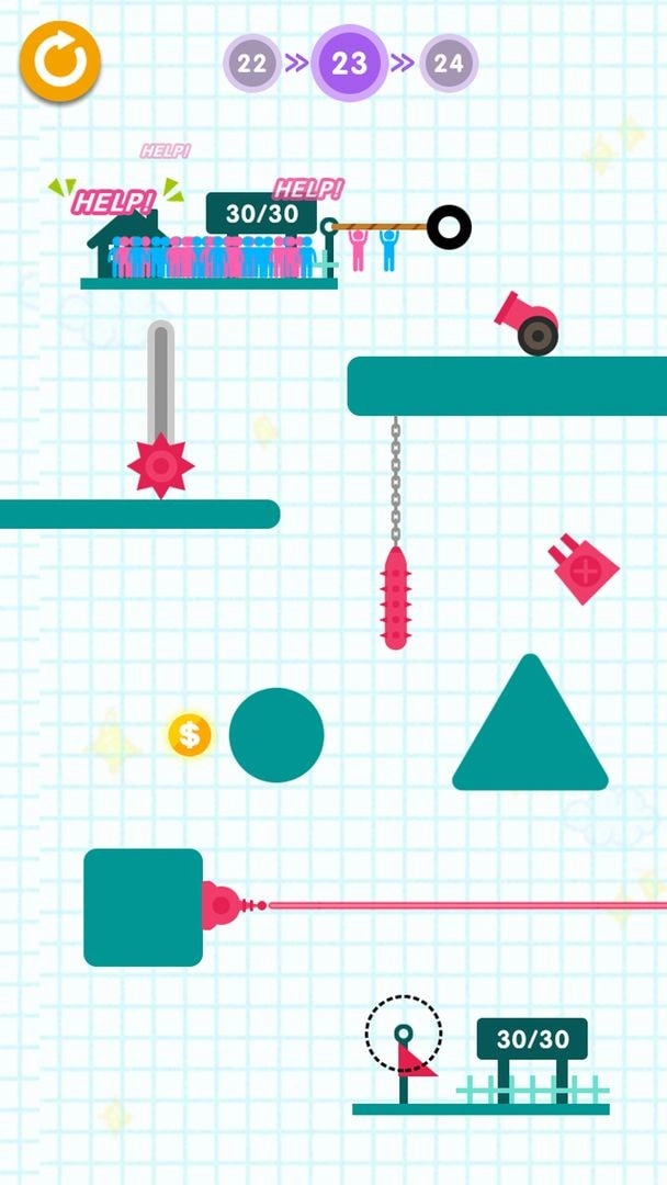 1. 海量游戏关卡等你挑战,玩家需运用计算方法,使所有人都能获救。在放置绳索的时候,务必牢记。