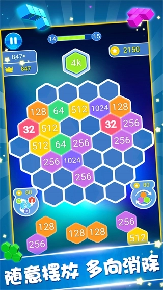 在这款消除游戏里,摒弃传统关卡挑战模式。玩家只需点击3个及以上同色且堆叠在一起的方块,就能实现消除操作。当成功累积到目标分数,游戏便会自动跳转至下一关。快来方块世界,一同铸就块块传奇吧!