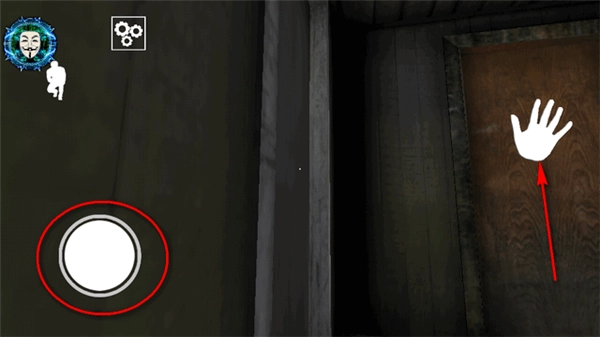 4、左下方的圆圈代表人物行走动作,手掌图案表示推开动作,人物还能够进行站立和蹲下的操作。