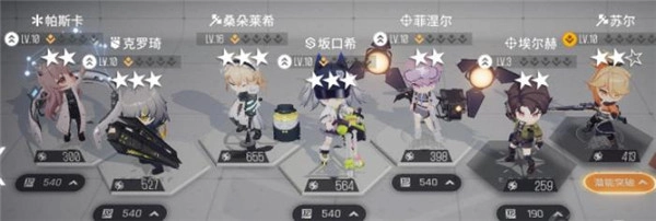 游戏开始先进行主线任务和抽卡,每个职业挑选一个角色来练(按照开服节奏榜推荐的练)。除了帕斯卡和克罗琦,其他不属于最终阵容的人形,等级提升到50级就不再继续,也不进行突破(毕竟金色突破材料极度匮乏,要是培养同职业两三个角色,就得耗费大量体力去刷突破材料副本)。而帕斯卡和克罗琦可以突破到50级。在初期,这样一支50级的队伍,差不多能通关第四章主线以及一部分无尽模式,这个过程大概需要七天时间。在此期间,签到奖励也能全部拿到,帕斯卡也差不多能达到五星,up池子也基本快能保底了。到这个时候,就可以完全确定初始阵容,接着把阵容里所有角色等级提升到60级就行。