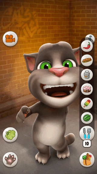 1、汤姆猫可以模仿玩家的语音,且会用自身的语言做出回应。